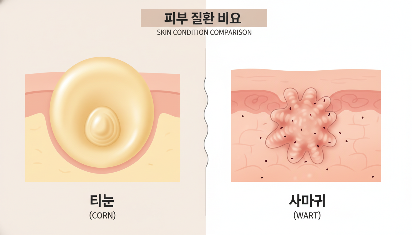 | 구분 항목 | 티눈 (Corn / Callus) | 사마귀 (Wart) |