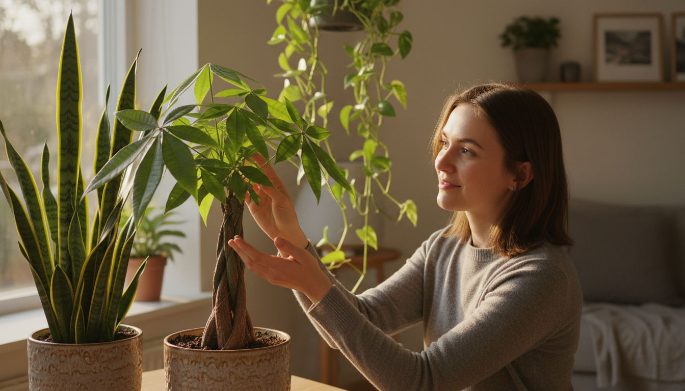 - 뱅갈고무나무: 넓은 잎으로 포름알데히드 제거 능력이 뛰어나며, 생명력이 강해 초보자도 쉽게 키울 수 있습니다.